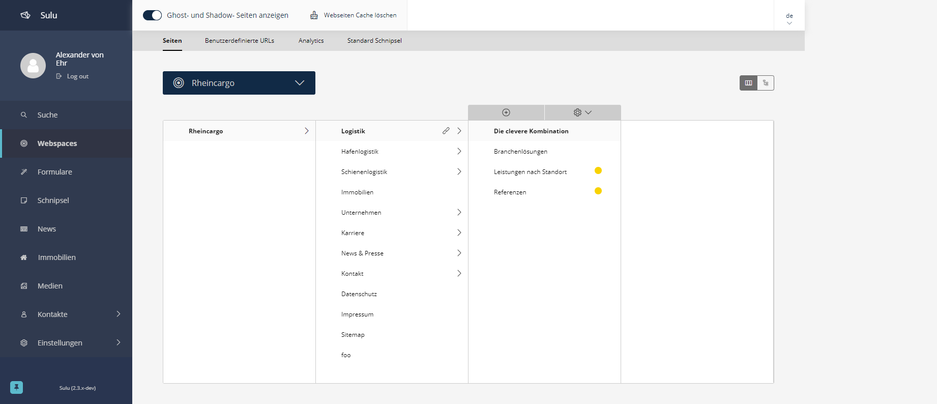 In der Seitenleiste im Admin-Backend den Reiter "Webspaces" auswählen.